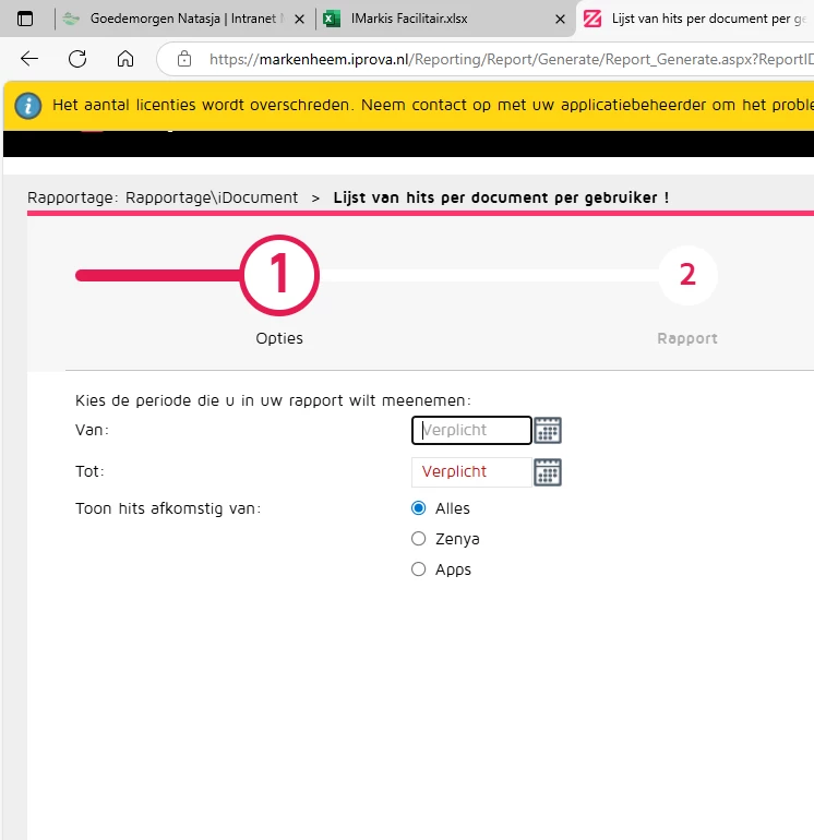 Als je de licentie overschrijdt dan heb je als applicatiebeheerder 6 weken om het licentieoverschrijding probleem op te lossen voordat de gewone gebruikers er in het portaal hinder van ondervinden.