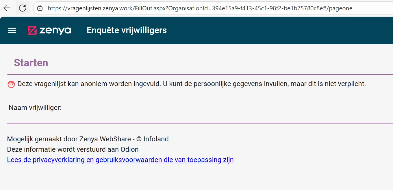 Als je de vragenlijst intern uitzet (dus via Zenya), dan is de herkomst van de vragenlijst mijns inziens duidelijk. Dit doe je bijvoorbeeld voor tevredenheidsonderzoeken onder je eigen medewerkers