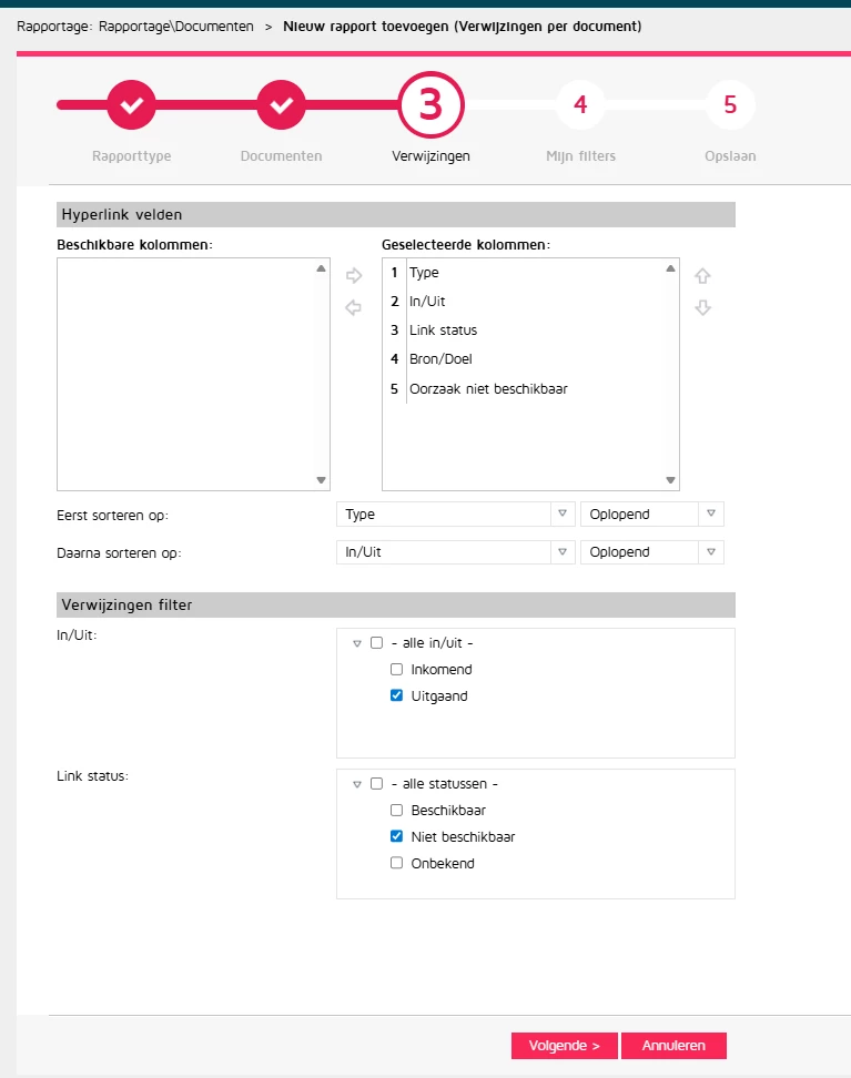 Is het mogelijk om een rapport uit te draaien met een overzicht van documenten die niet werkende hyperlinks bevatten?