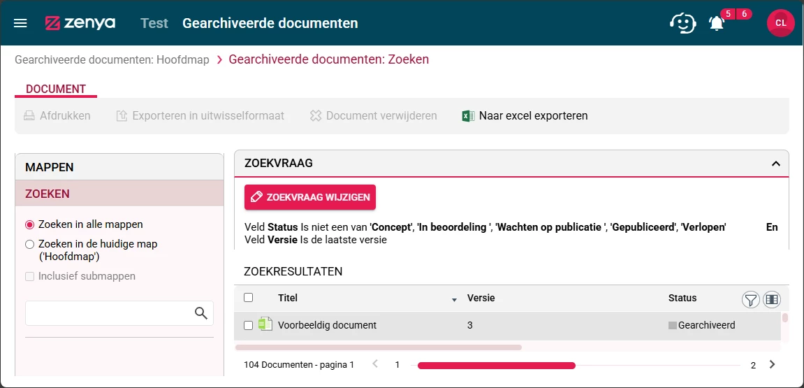 Rapportage van gearchiveerde documenten