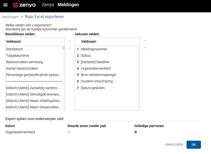 Om rapportage te maken exporteer ik regelmatig meldingen naar Excel. Echter wordt alleen de gekozen afdeling geëxporteerd en niet de laag erboven (Zorggroep). Wanneer ik ziekenhuisbrede rapportage maak en op zorggroep wil rapporteren, dan moet ik in Excel een kolom toevoegen en bij alle afdelingen handmatig de zorggroep aangeven.
