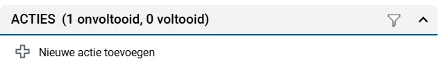 Ik zou graag willen nagaan of het mogelijk is om vanuit het paneel ‘Acties’ (zie onderstaande foto) een overzichtslijst te genereren van alle bestaande acties, inclusief hun huidige status, overheen alle meldingen van mijn meldformulier.