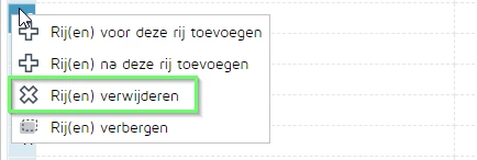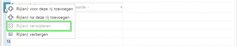Helaas is de knop met 'Rij verwijderen’ grijs weergegeven en kan ik deze dus niet selecteren.
