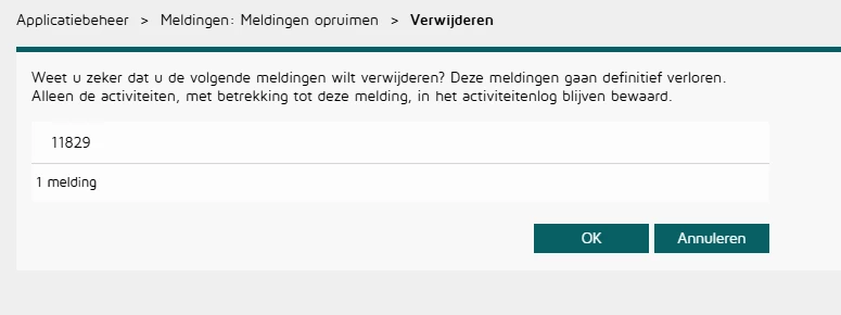 Wanneer het verzoek komt een melding te verwijderen zou het prettig zijn om het (Topdesk)nummer van de aanvraag te kunnen noteren.