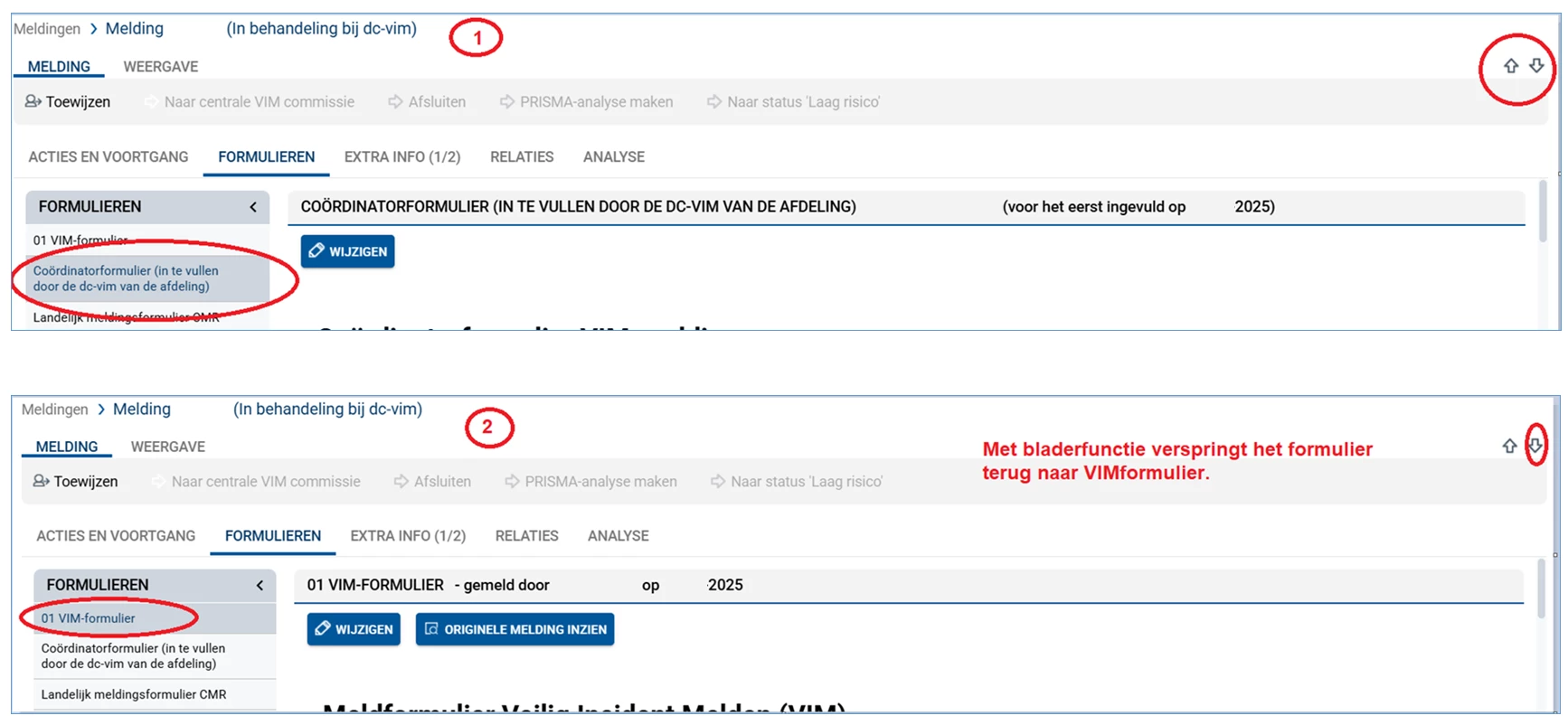 Wanneer een filter wordt geopend om meldingen te bekijken, en men bladert door de meldingen, springt Zenya na een paar keer bladeren automatisch terug naar het VIM-formulier. Dit gebeurt terwijl de gebruiker enkel coördinatorformulieren wil inzien. Het lijkt niet continu te gebeuren, maar wel regelmatig: meestal gaat het twee keer goed, daarna verspringt het weer.