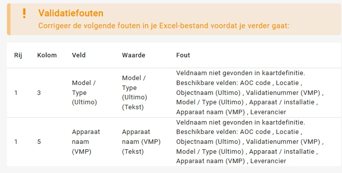 ik heb een kaartenbak aangemaakt en wil graag een bulk kaarten importeren. Via importeren heb ik een Excel file gegeneerd en gevuld, echter bij de stap valideren blijf ik de onderstaande foutmelding krijgen. Zelfs als ik niets wijzig in de Excel na het downloaden krijg ik deze melding.