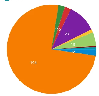 Ik merk net dat de kleuren van de reeksen in de taartdiagrammen een andere kleur hebben gekregen op het portaal. Bij doorklikken op de taartdiagram voor detail staan dan wel correct onze eigen ingestelde kleuren.