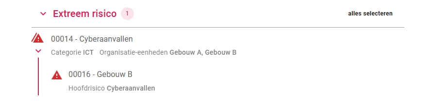 Wanneer je binnen de riskmodule kiest voor ‘alle risico's’ en vervolgens groepeert op netto score dan worden subrisico's dubbel getoond, wanneer het hoofdrisico een andere (hogere?) score heeft dan het subrisico. Kan iemand aangeven waarom dat is?