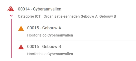 Subrisico's zouden niet dubbel getoond mogen worden. Het hoofdrisico wordt wel altijd bij het subrisico getoond, maar als het hoodrisico een andere score heeft dan het subrisico dan wordt het hoofdrisico lichtgrijs weergegeven.